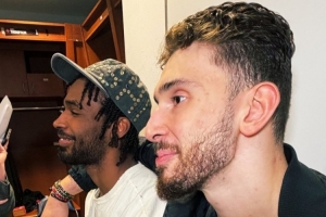 火箭美女記者Vanessa Richardson曬出申京和伊森賽后接受采訪時摟著肩膀的合照,配文寫道:“氛圍,化學(xué)反應(yīng),肢體語言?!?/p>