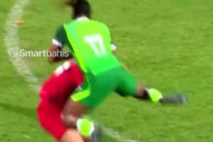 體育資訊04月01日訊 在友誼賽,約旦2-2尼日利亞的比賽第92分鐘,尼日利亞前鋒伊沃比在遭到對手不斷拉拽下,憤怒地回頭使用堪稱“WWE招式”的動作干倒對手,被裁判紅牌罰下。