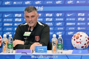 4月2日下午,成都蓉城隊主教練約翰·阿洛伊西和隊長韋世豪出席賽前新聞發(fā)布會。