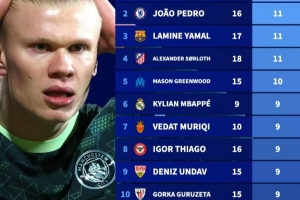 體育資訊3月12日訊 德轉(zhuǎn)盤點(diǎn)了在2026年五大聯(lián)賽球員在聯(lián)賽+杯賽進(jìn)球榜,其中凱恩15球居首,而哈蘭德僅打進(jìn)4球只位列第114位。具體如下:
