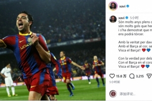 哈維寫道:“歲月如梭,征程漫漫,無數(shù)進(jìn)球我們?cè)鴧群埃C明無人能撼動(dòng)我們的信念?!保ò退_隊(duì)歌部分)
