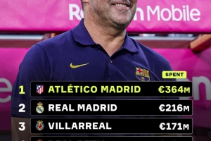 根據(jù)數(shù)據(jù)統(tǒng)計(jì),弗里克上任后,巴薩引援花費(fèi)僅為8800萬(wàn)歐,在西甲中位居第5位,落后于馬競(jìng)(3.64億歐)、皇馬(2.16億歐)、比利亞雷亞爾(1.71億歐)以及貝蒂斯(1.01億歐)。