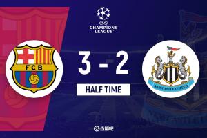 半場結(jié)束,巴薩暫3-2紐卡。