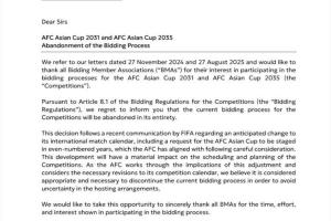關(guān)于2031年及2035年亞洲杯申辦程序終止的通知